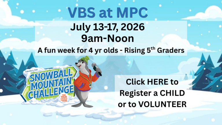 For children 4 years old (as of 6/1 of the VBS year) through rising 5th graders experience a week of adventure, joy and laughter as they learn about our great God.