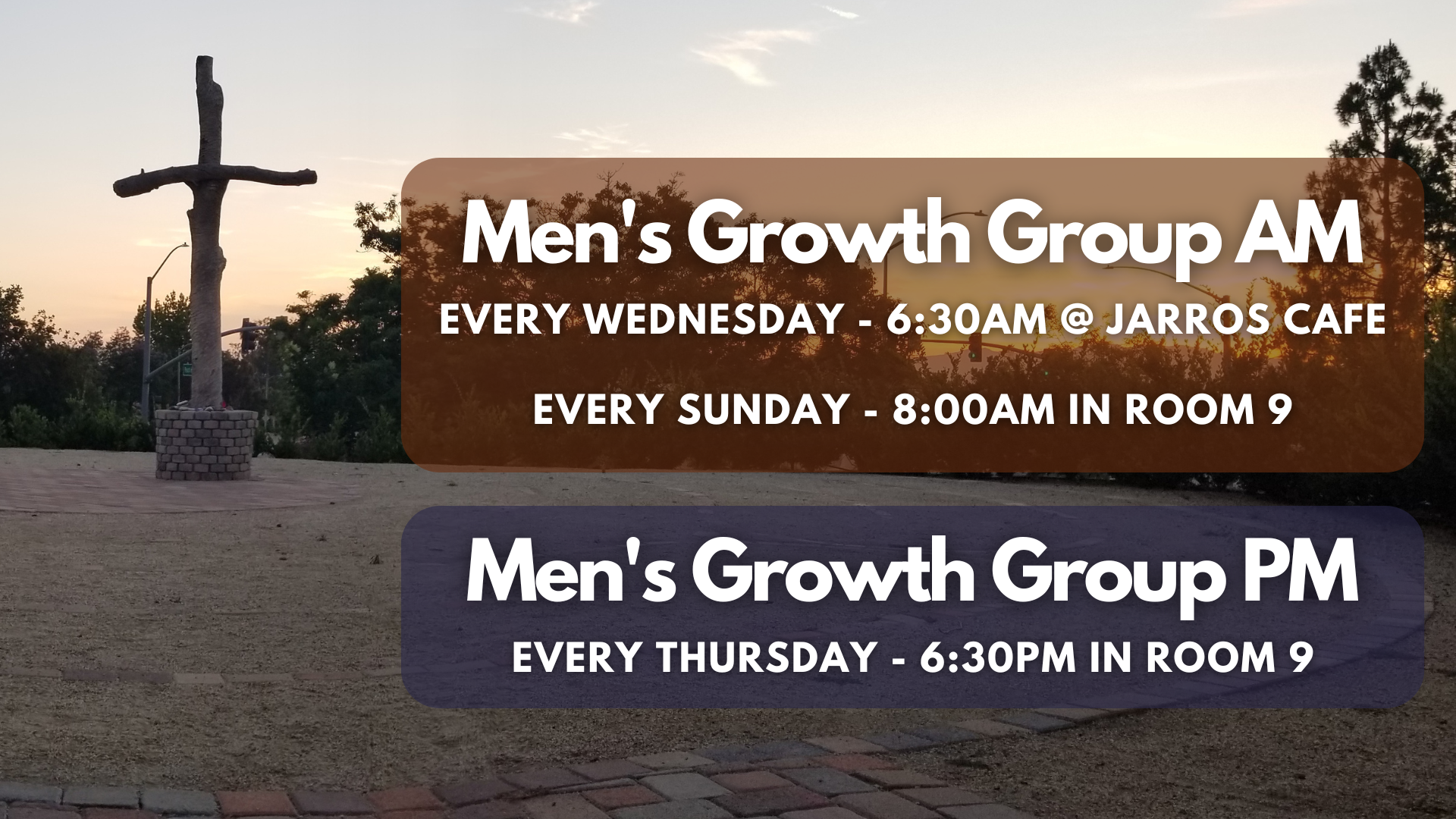 You are invited to join us on Wednesday mornings at 6:30am for our weekly Growth Group at Jarros Cafe in Moorpark. Another morning group is on Sunday mornings at 8:00am in Room 9 at MPC.