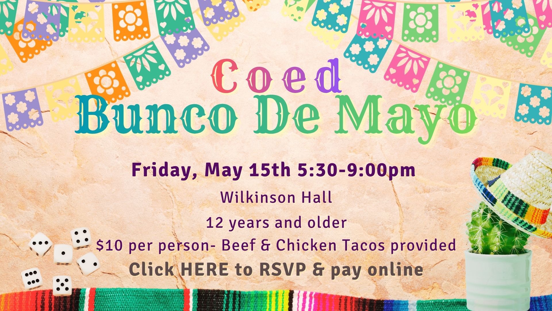 Our annual Coed Bunco returns on Friday, May 15th in Wilkinson Hall! RSVP here if you'd like a game night with tacos and prizes!
