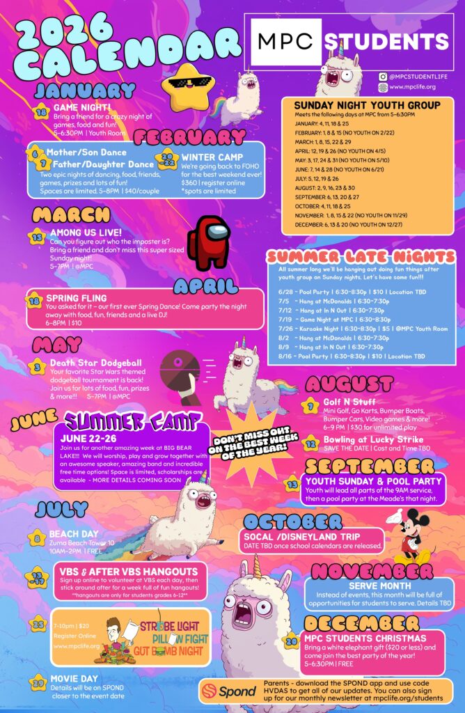 Welcome to MPC Students, our youth ministry for students in grades 6-12. With this ministry, we invite students to grow in community with their peers and to grow together in their relationship with Jesus Christ.