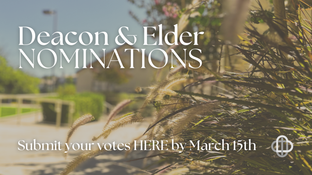 Please provide your Deacon/Elder votes by Sunday, March 15th at 12:00pm.