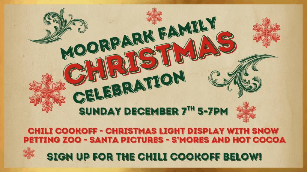 We’ll have a Chili Cook-Off, Light Display with Snow, Petting Zoo, Arts and Crafts, Santa Pictures and lots more! It’s a great night to bring your family, your neighbor or anyone you want to celebrate Christmas with! This event is free and open to all!